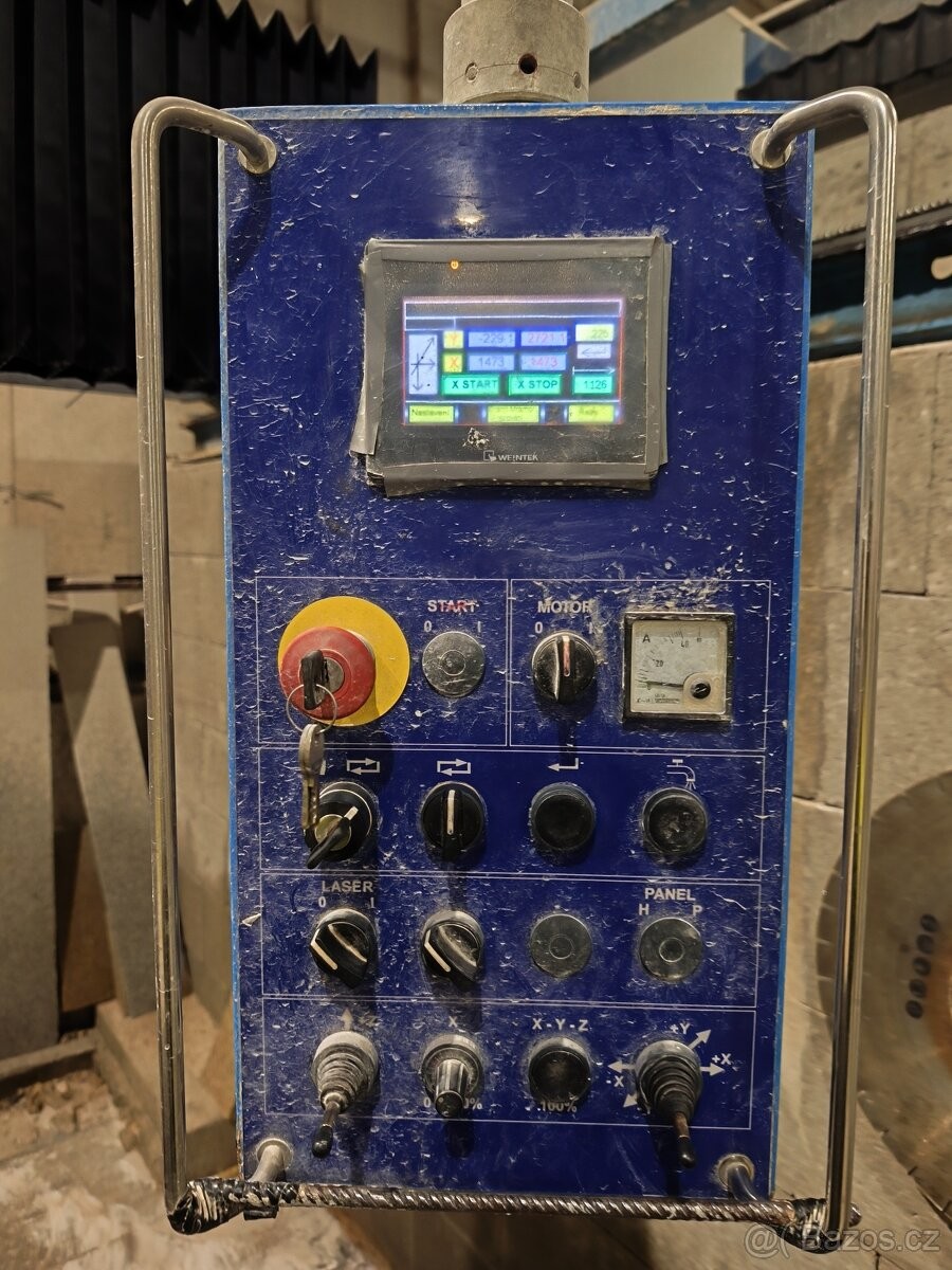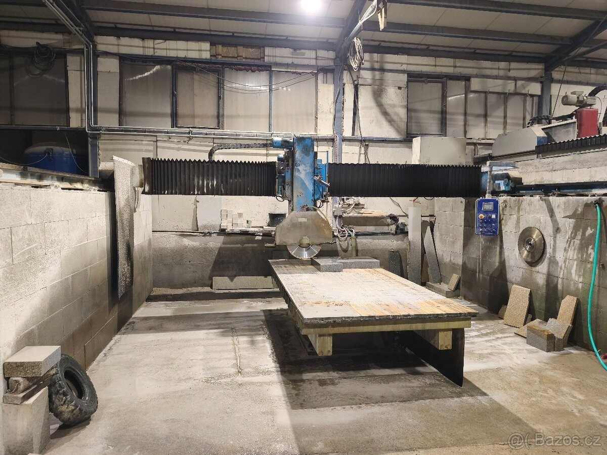 Formátovací pila na kámen Kaspe KBS 40, předělané ovládání na Euromasiv. Ještě cca 14 dní v provozu. Pak bude demontována a nahrazena novou. Včetně ručně otočného stolu.